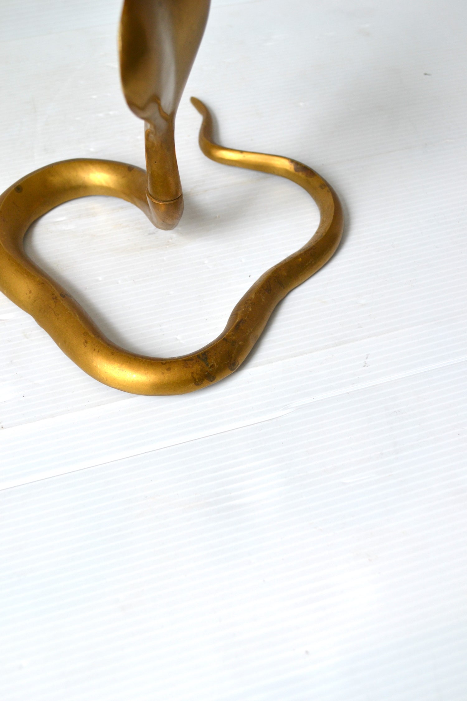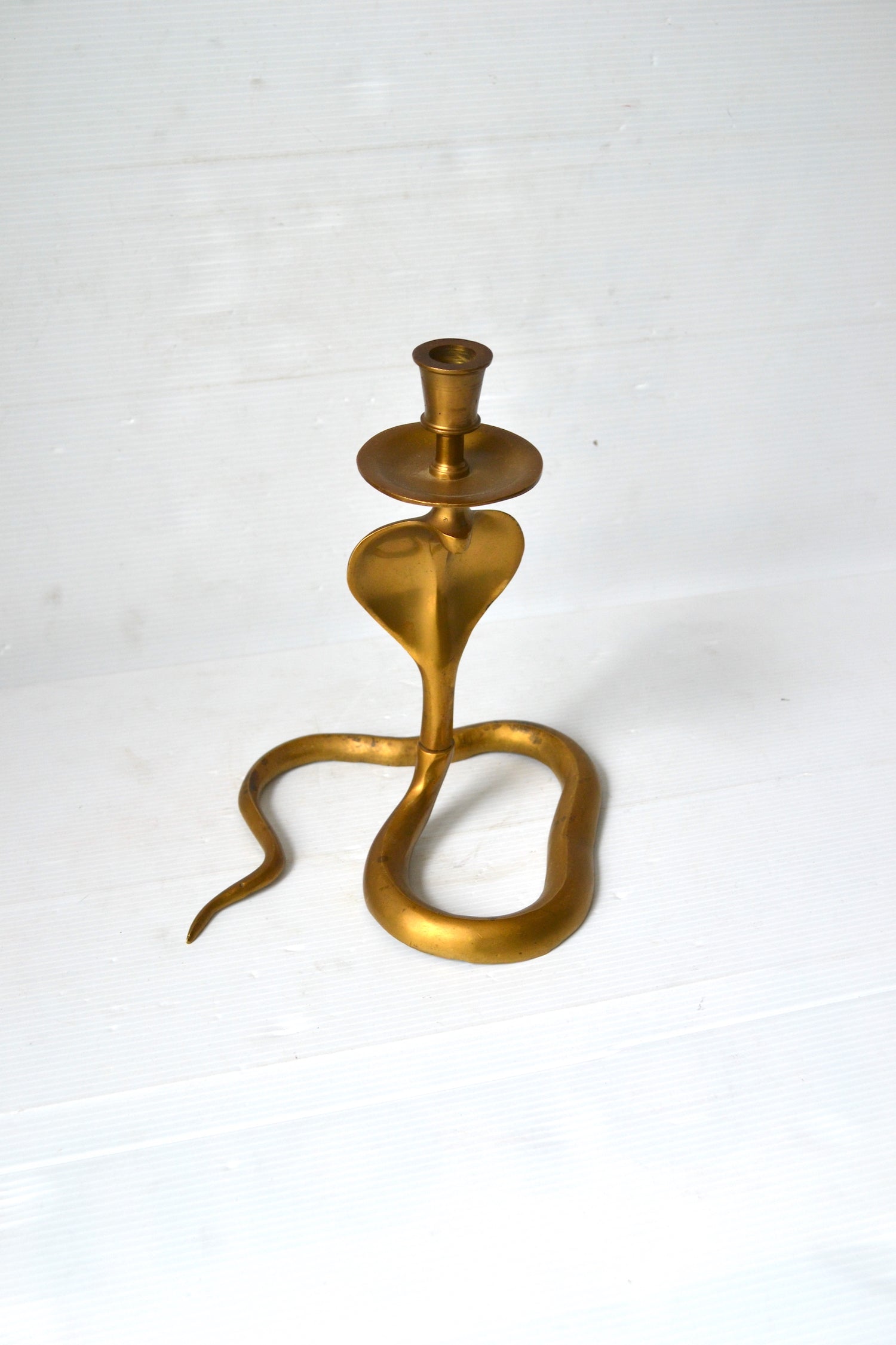 Superbe bougeoir zoomorphe vintage en forme de cobra en laiton