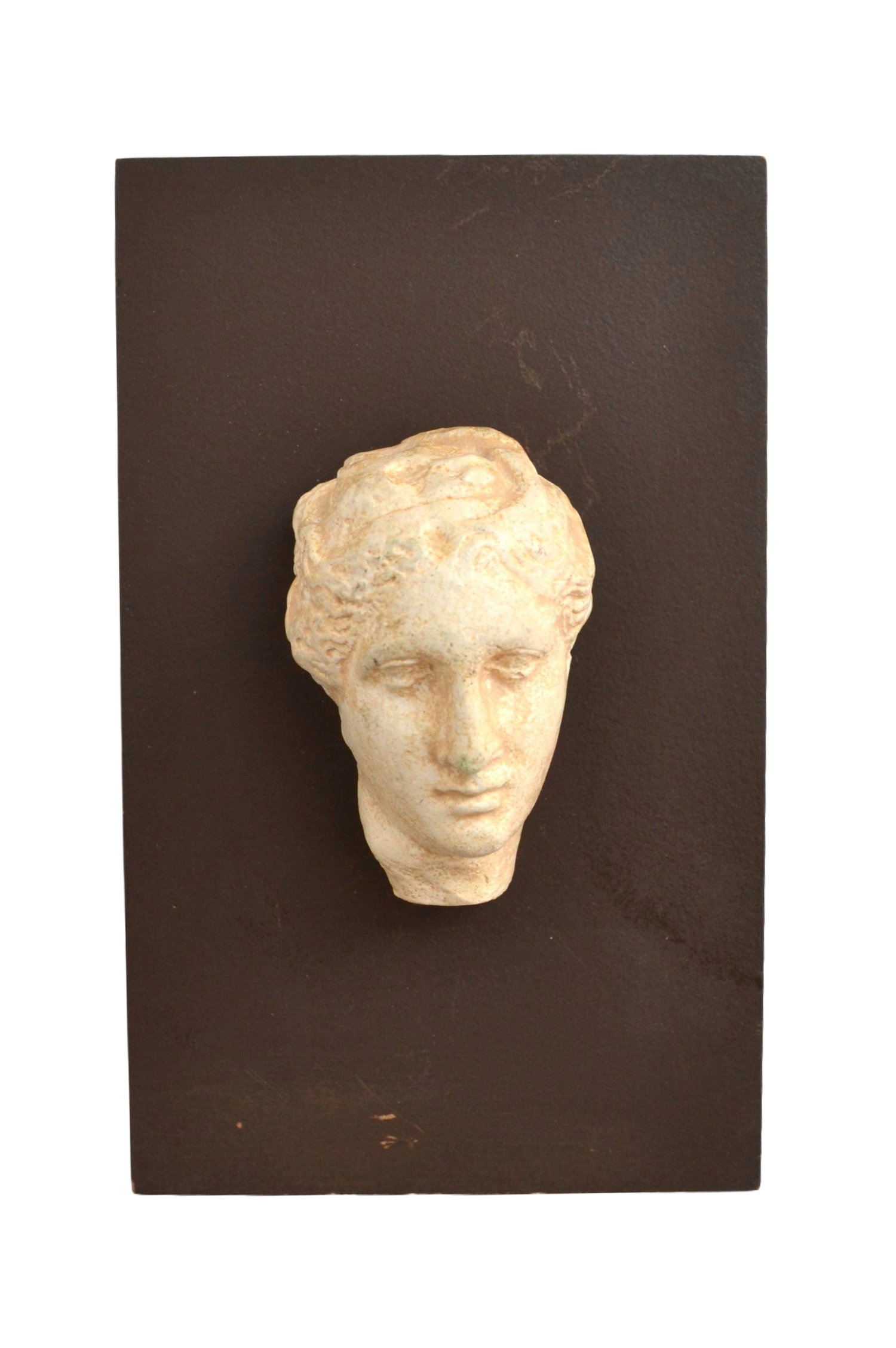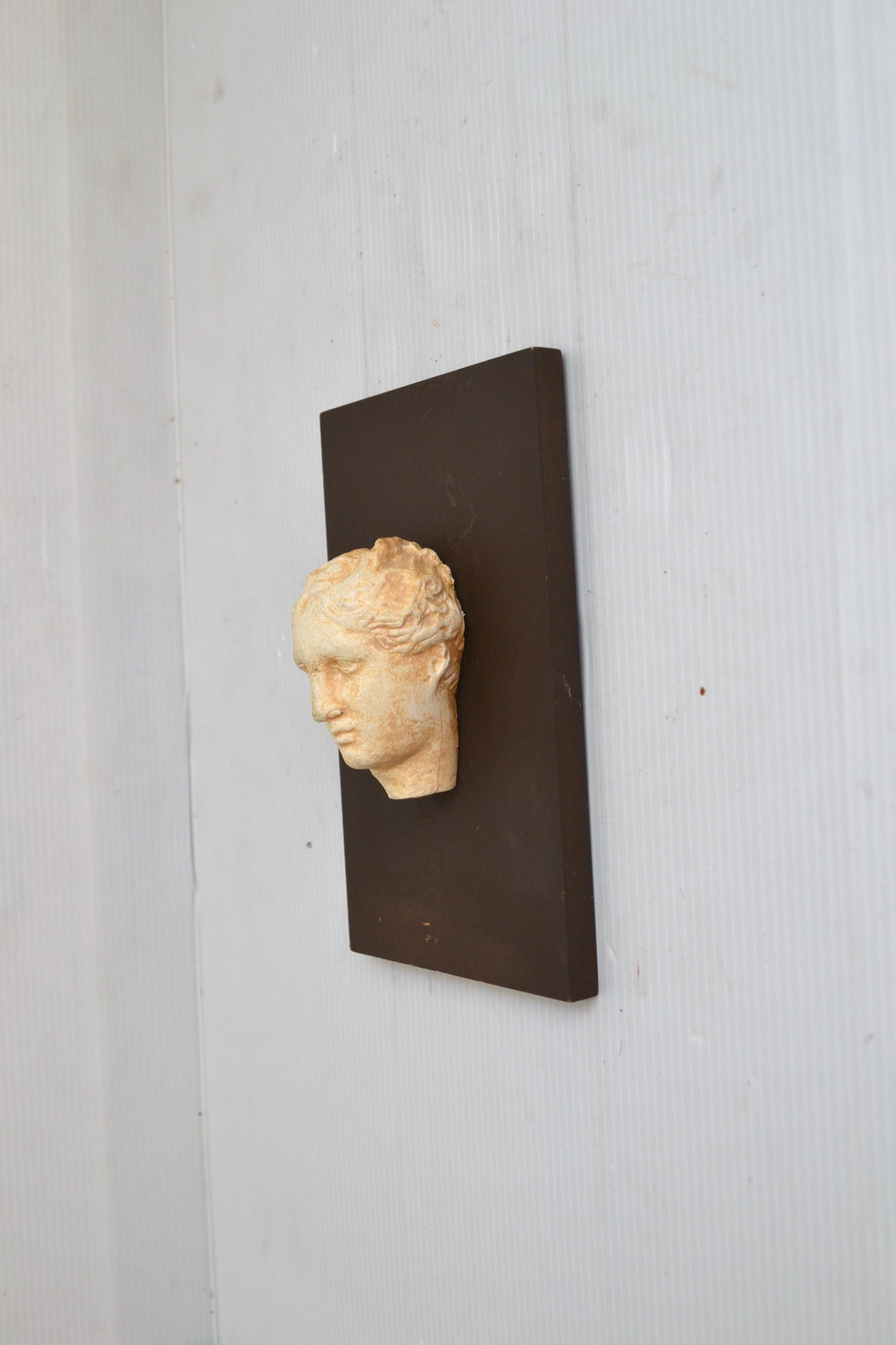 Ce très joli cadre se distingue tout naturellement par sa poésie et son originalité. Il se compose d'une plaque de bois verticale sur laquelle se dessine un visage de déesse grecque en relief.