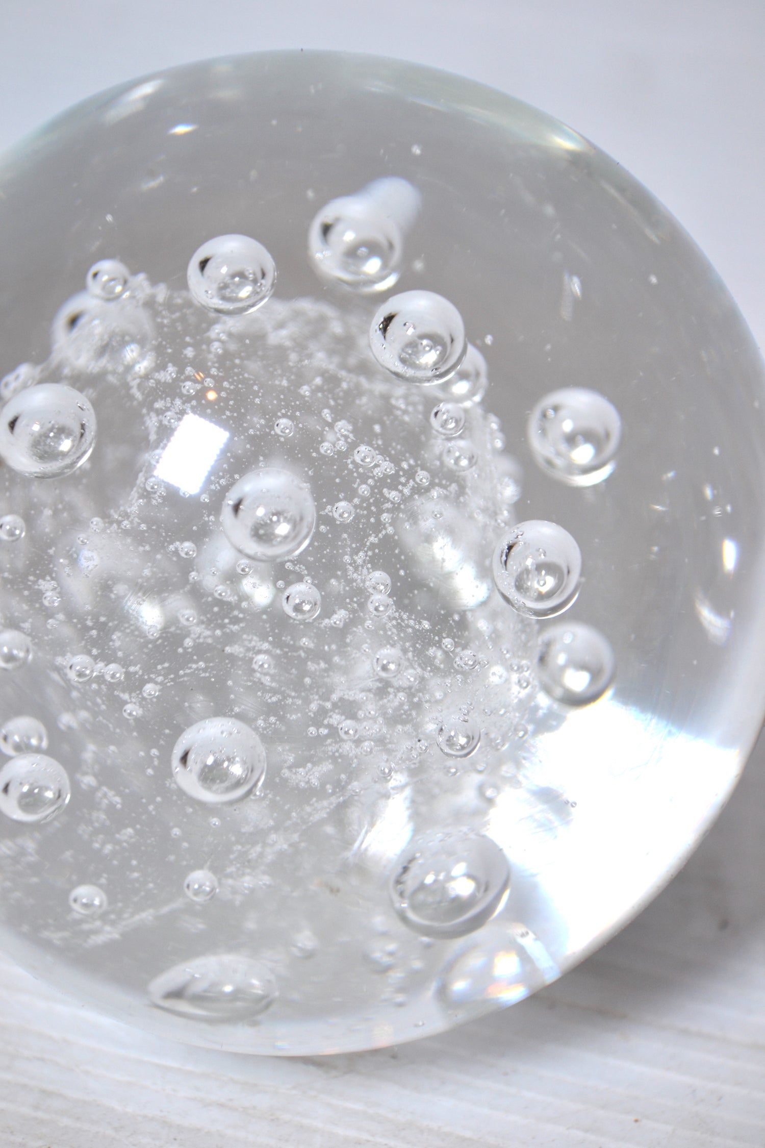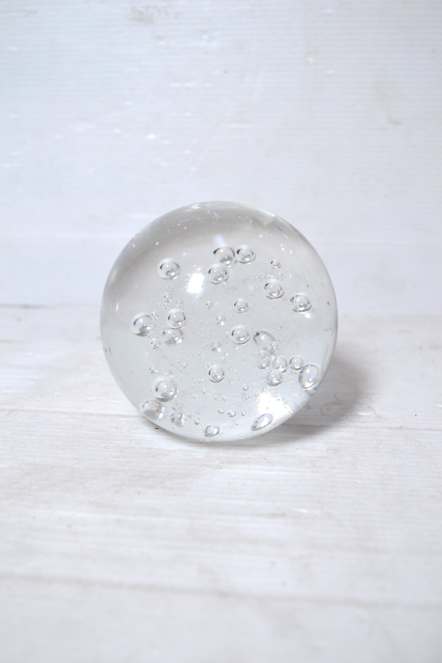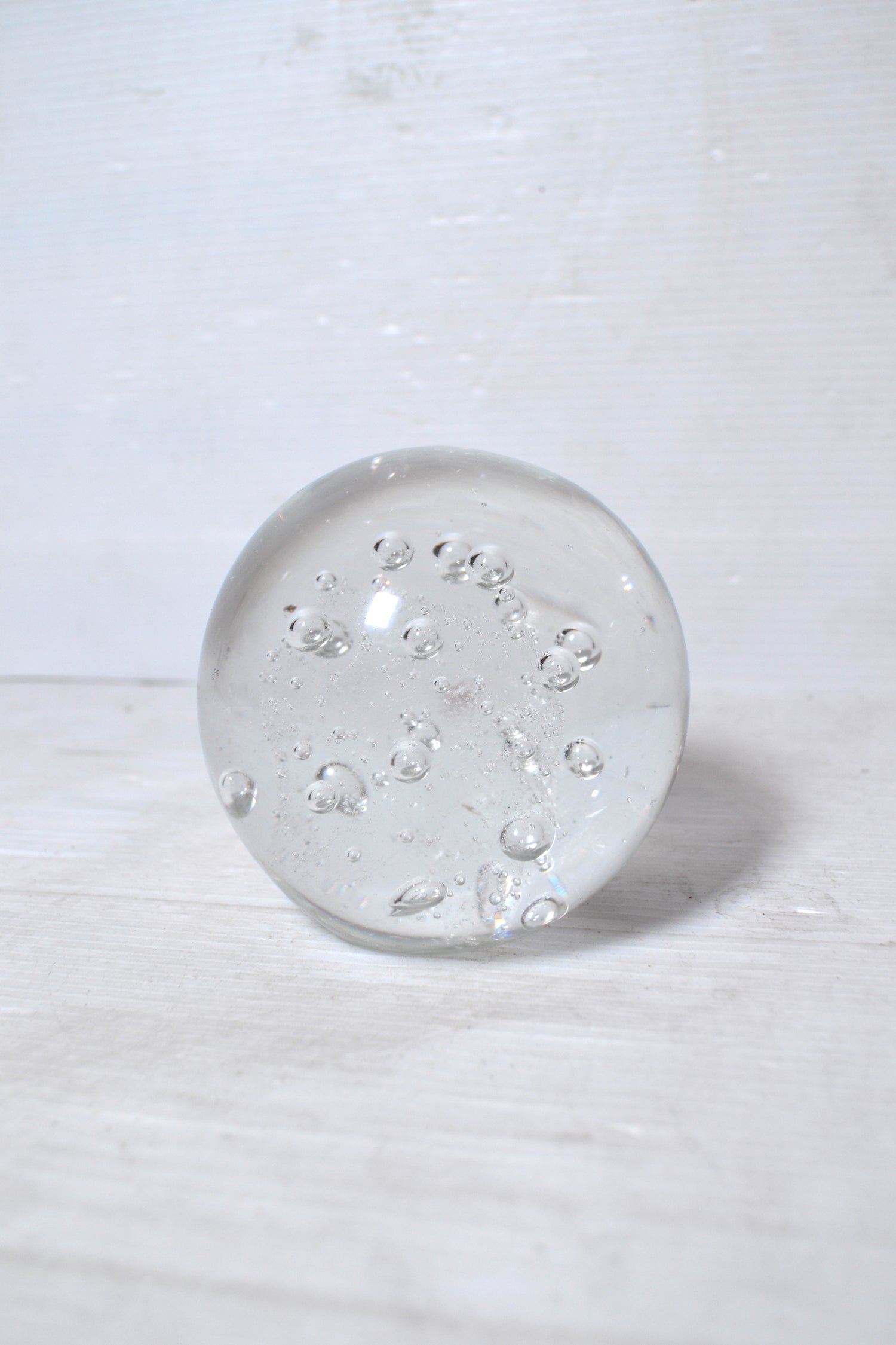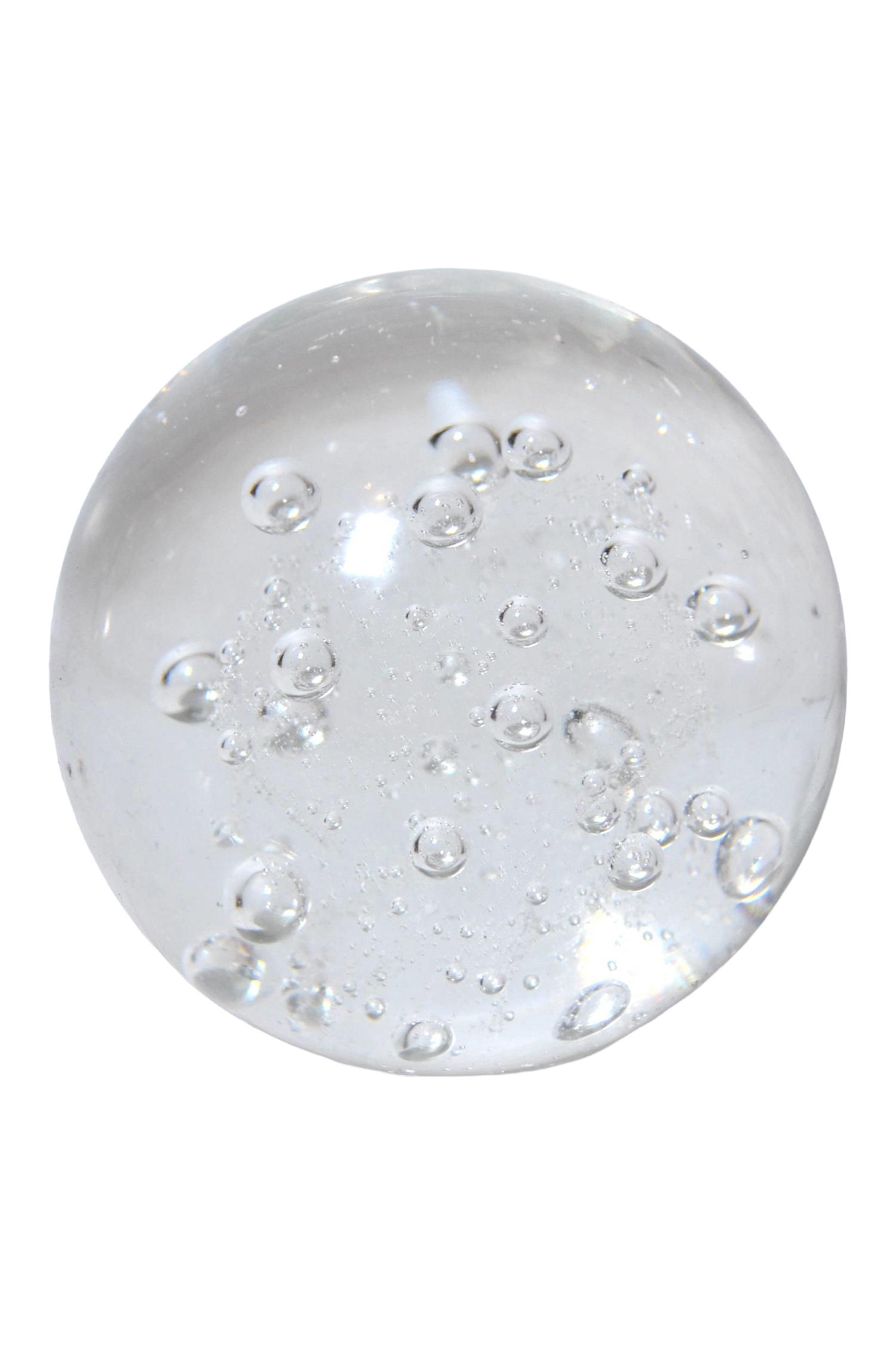 Ce superbe sulfure de forme ronde renferme de très jolies bulles d'air emprisonnées. Un objet graphique et design qui se positionnera comme presse-papier sur un bureau de travail, comme bel objet déco sur un buffet parisien ou au centre d'une collection en association avec d'autres sulfures de tailles et de formes différentes.