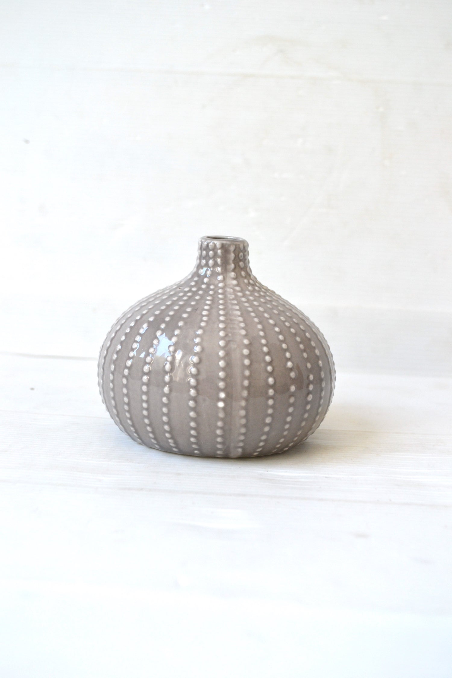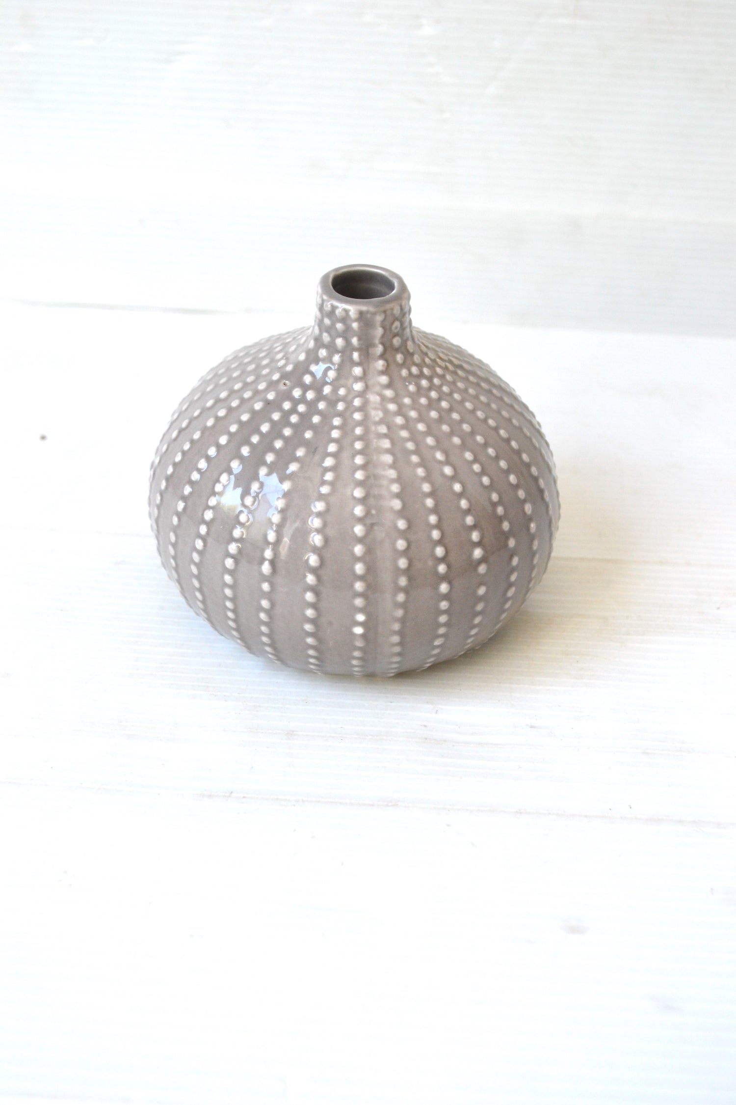 Un curieux vase en céramique à la forme particulièrement originale qui trouverait toute sa place dans un coin cabinet de curiosités, sur un buffet parisien ou en association avec d'autres vases en céramique.
