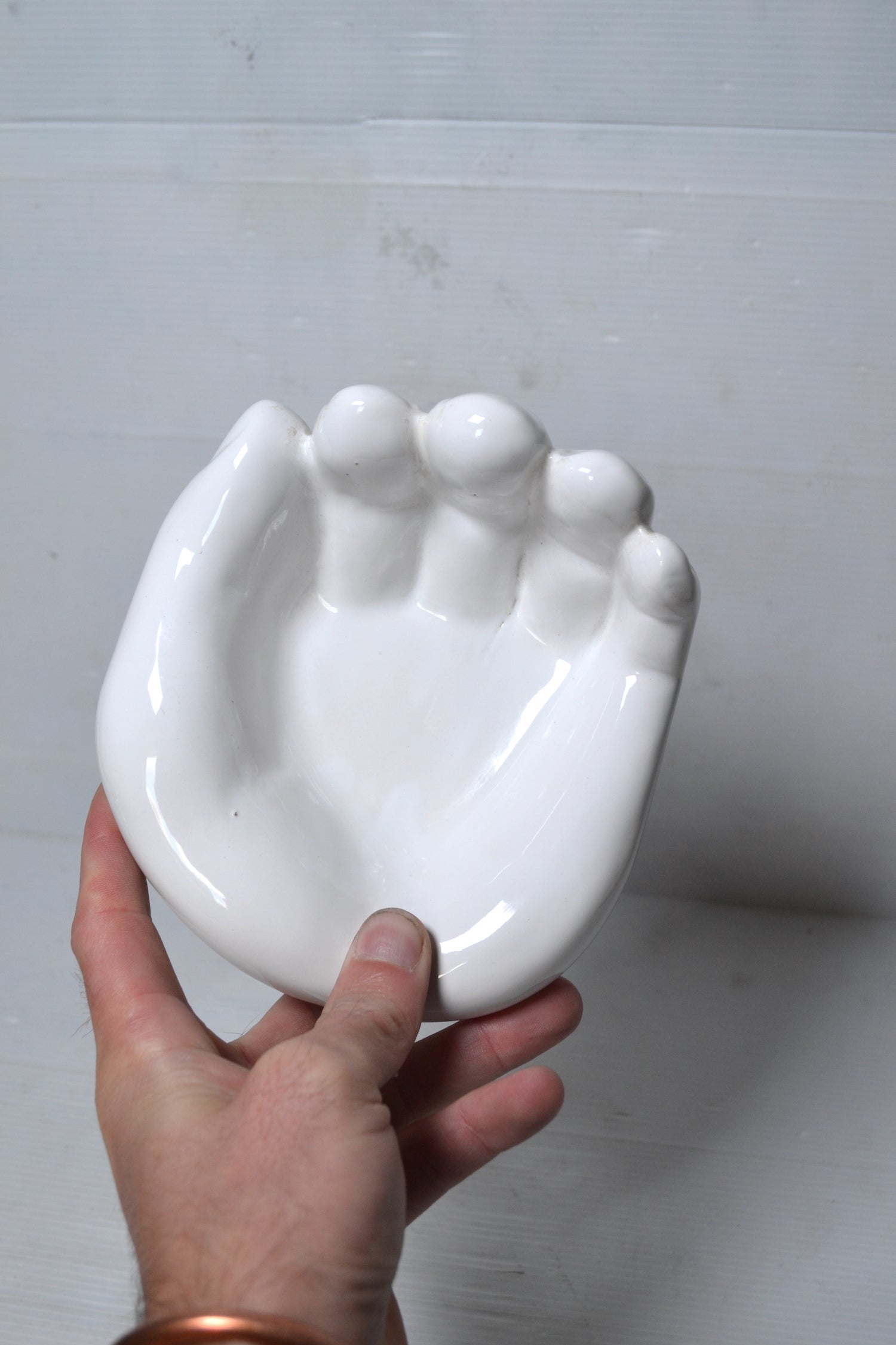 Superbe vide-poches vintage en céramique en forme de main